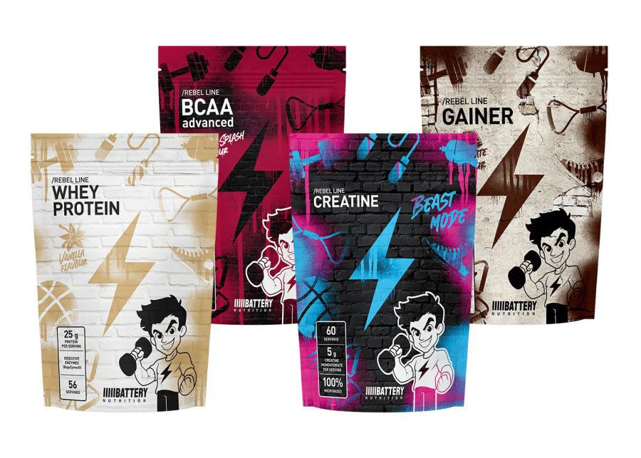 - Battery Whey Protein: Kvalitetan izvor proteina za izgradnju mišića i oporavak.